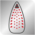 رأس المكواة له شكل خاص يجعل الكي حول الأزرار أسهل.